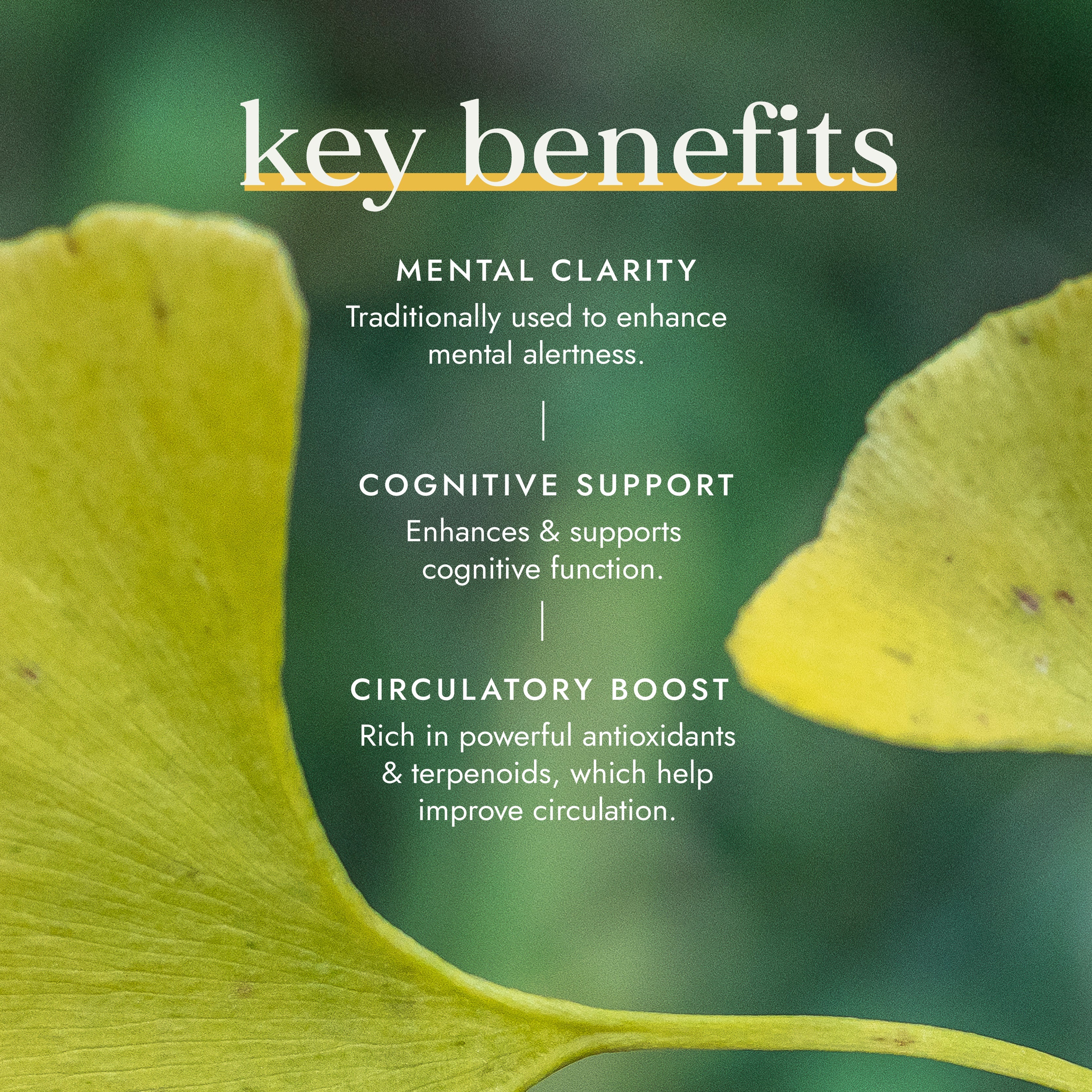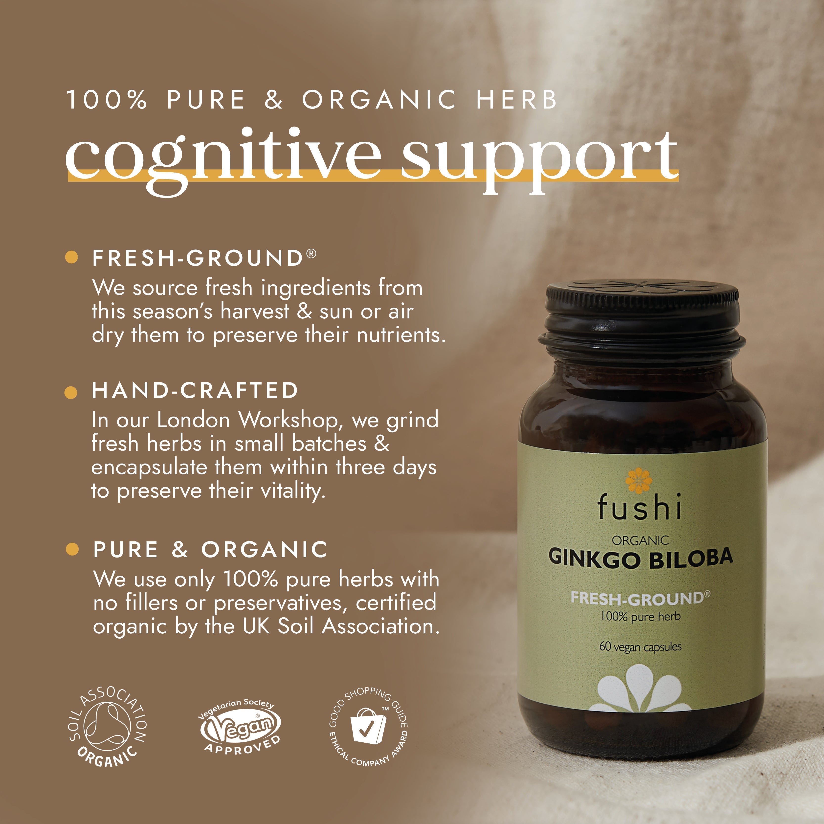 KEY INGREDIENTS: 100% pure & organic Fresh-Ground® Ginkgo Biloba.