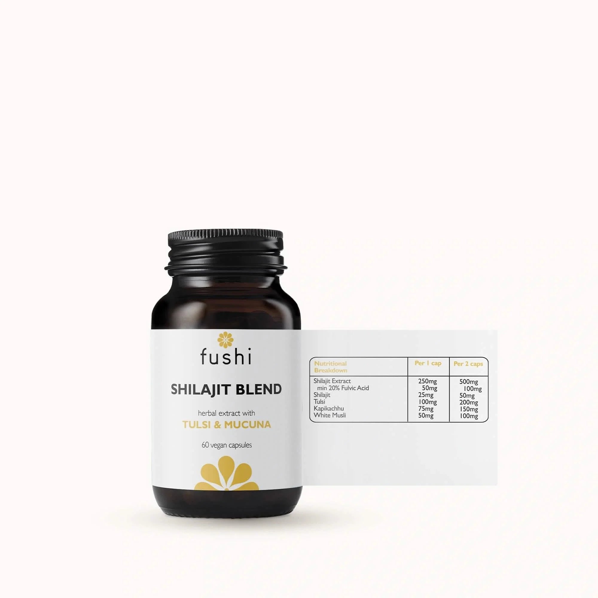 With a minimum of 20% Fulvic Acid, a powerful electrolyte to support gut health, Fushi Shilajit Blend is nutritionally dense in minerals Iron, Calcium, and Zinc to boost optimal wellness.