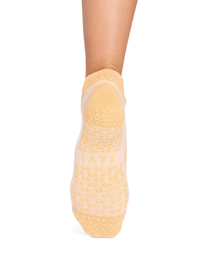Emma Grip Socks have a less-is-more attitude with her sweet Mary Jane style. Her low design hugs the foot just below the ankle while Tavi's stella grip sock pattern safely moves you through your barre, Pilates and yoga classes.