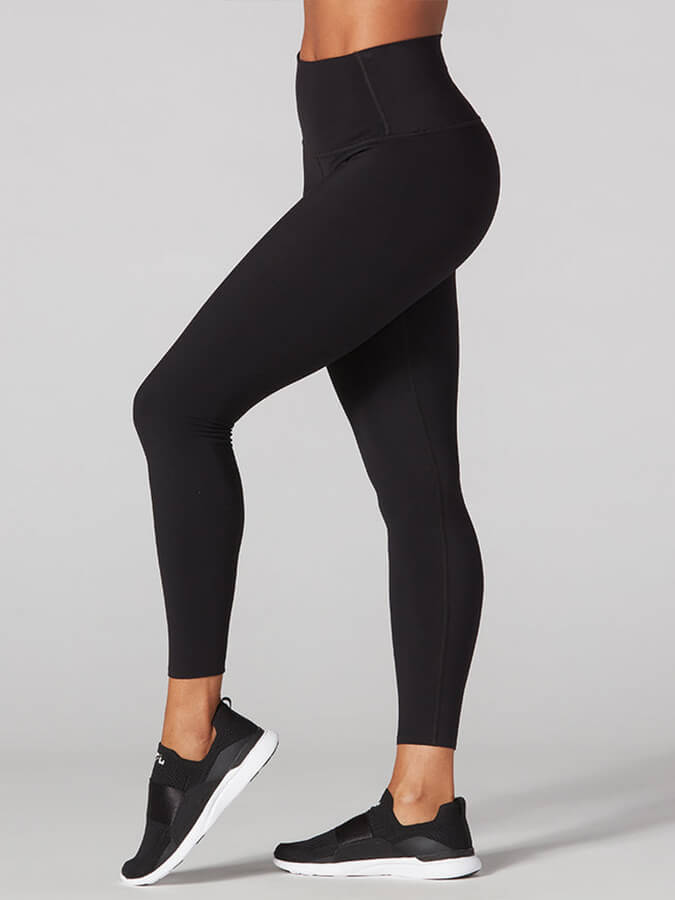 FIT: 25' inseam intended to sit at the ankle. High-rise front smoothing panel for ultimate comfort and flattery. Flatlock seams for comfort and functionality. Seamless hem so it stays put during your practice.