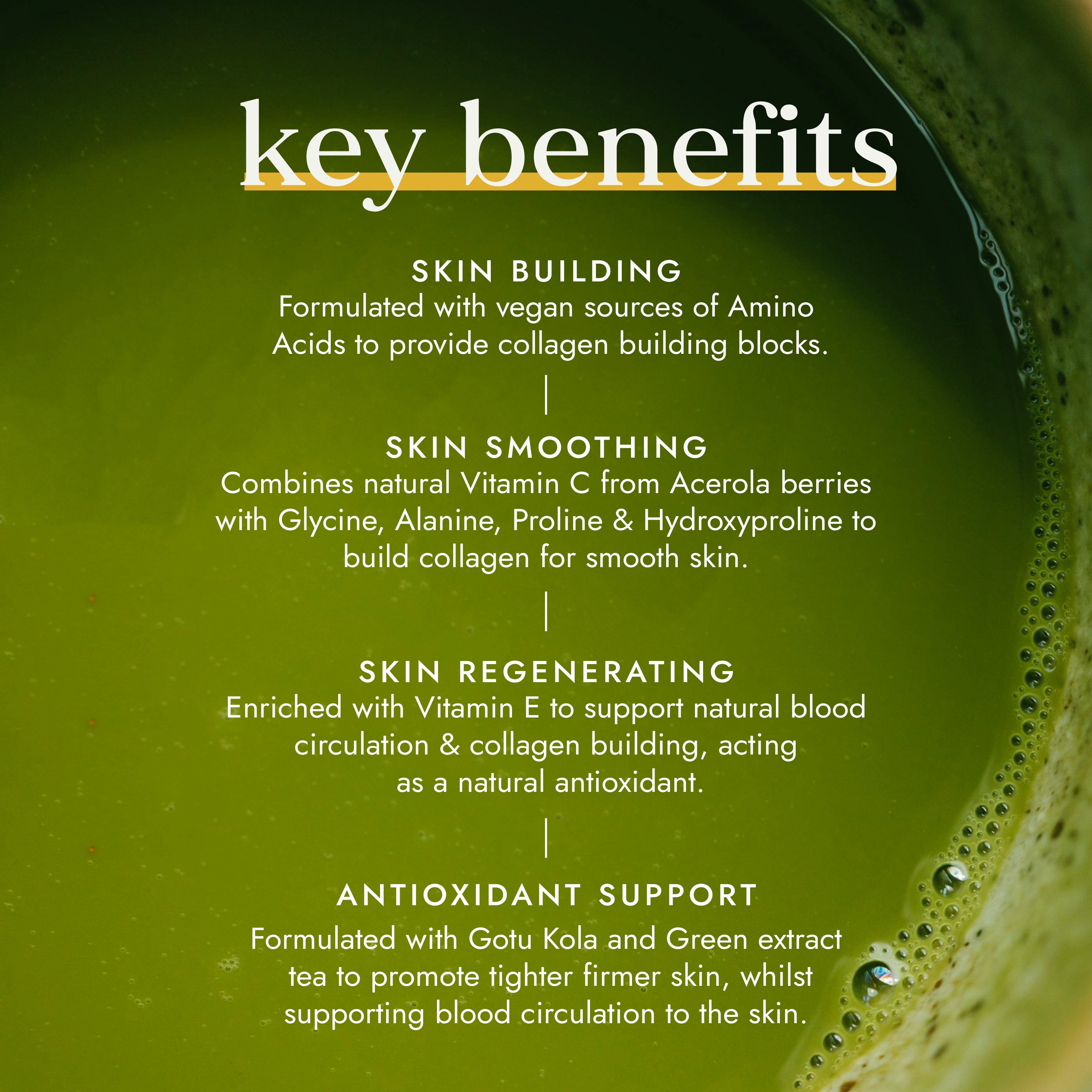 BENEFITS: With Amino-Acid, building blocks and key micronutrients to assist in the build of skin collagen.
